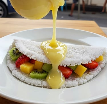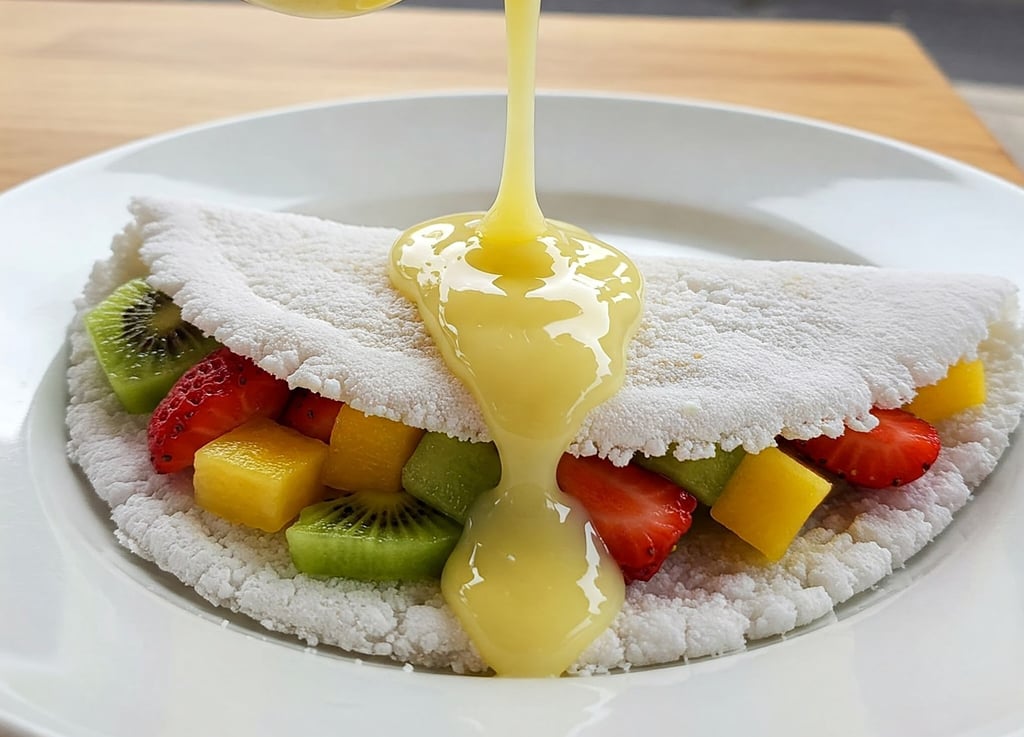 Receita Fitness Crepioca Turbinada com whey: Tapioca, ovo e whey se unem em sabor e nutrição. Saciedade, músculos nutridos e alma em paz. Uma refeição para o corpo e a alma.