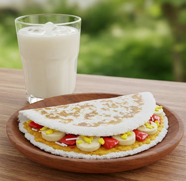 Recheios: Frutas (banana, morango, etc.), pasta de amendoim, queijo cottage, frango desfiado, legumes refogados, etc.