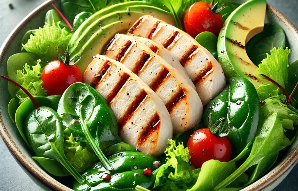 Uma salada verde com frango é uma opção deliciosa, nutritiva e versátil para uma refeição fitness.