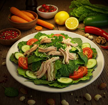 Na selva de concreto, onde a fome ruge e a pressa devora, surge um oásis de sabor e saúde: a salada verde com frango. Um prato que combina a crueza da realidade com a poesia do paladar.