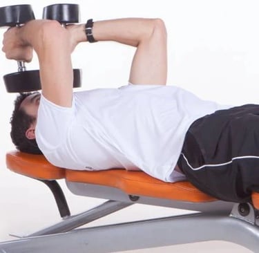 Deitados, com as pernas ligeiramente dobradas e os pés apoiados no chão, como um guerreiro que se prepara para a batalha, segurem um peso em cada mão, como um pensador que contempla o infinito. Estiquem os braços para cima, como um pássaro que alça voo, apontando-os para o teto.